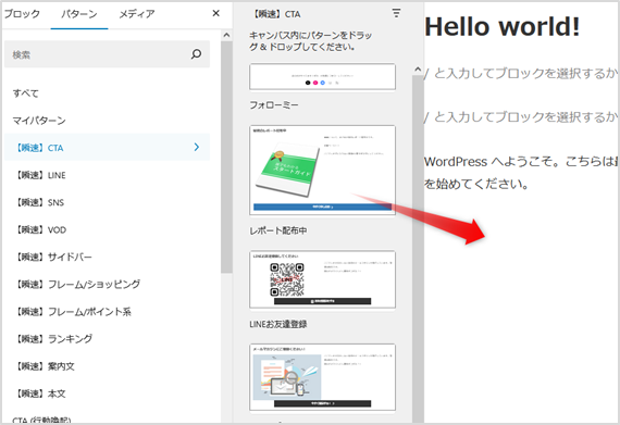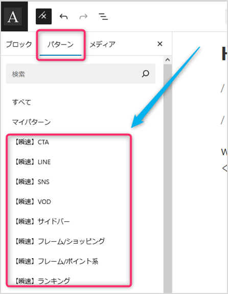 瞬速パターンは、WordPressのブロックエディタで使用する【記事中パーツ】のパターンデータです。