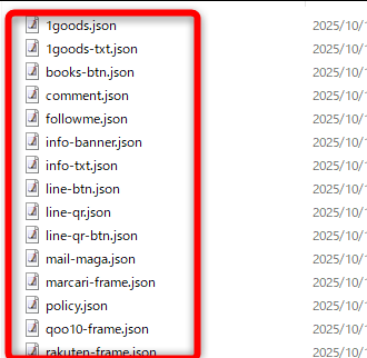 ご自分のPC内に保存されているjsonファイルフォルダ(先ほど解凍したもの)を開き、ひとつずつ選択していきます。データは一括では入りませんので、お手数でうがひとつずつ行ってください。