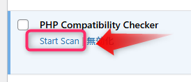 プラグイン一覧のところのPHP Compatibility Checkerから、「Start Scan」をクリックするとチェックが開始されます。