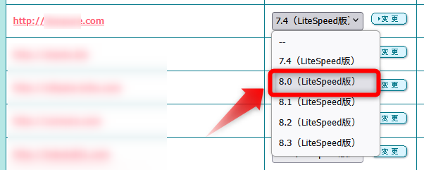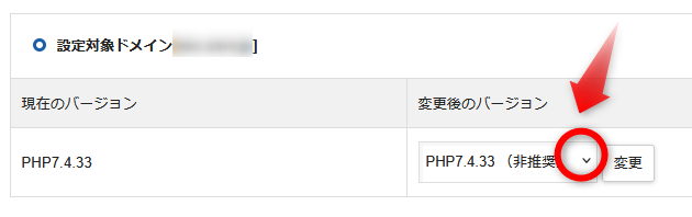 プルダウンメニューからバージョンを選んだら、「変更」ボタンを押します。するとサーバー側で設定が変更されます。