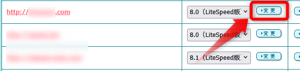 プルダウンメニューからバージョンを選んだら、「変更」ボタンを押します。するとサーバー側で設定が変更されます。概ね5~10分ほどかかります。