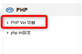 サーバーパネルの「PHP」メニューにあります、「PHP Ver.切り替え」ページへ行きます。