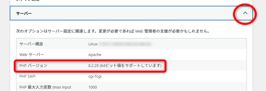 また、PHP8.0以上ではないと使えないプラグインも増えてきていますので、ここでPHPのバージョンアップを試みましょう。
